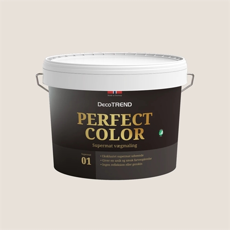 Vores smukkeste maling nogensinde er supermat, med et eksklusivt udseende. Perfect Colors bløde, supermatte finish giver en unik farveoplevelse. Den supermatte overflade, helt uden reflektion, fremhæver farverne på en helt speciel måde – og farven vil opleves både blødere og mere dæmpet.