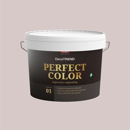Vores smukkeste maling nogensinde er supermat, med et eksklusivt udseende. Perfect Colors bløde, supermatte finish giver en unik farveoplevelse. Den supermatte overflade, helt uden reflektion, fremhæver farverne på en helt speciel måde – og farven vil opleves både blødere og mere dæmpet.