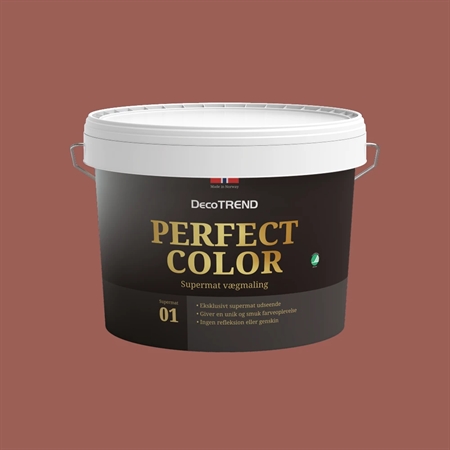 Vores smukkeste maling nogensinde er supermat, med et eksklusivt udseende. Perfect Colors bløde, supermatte finish giver en unik farveoplevelse. Den supermatte overflade, helt uden reflektion, fremhæver farverne på en helt speciel måde – og farven vil opleves både blødere og mere dæmpet.