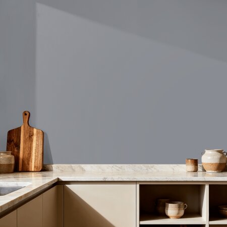 Flawless er en nedtonet mellemgrå med et svagt blåligt skær, der både emmer af elegance og ro. Flawless er den mørkeste af vores gråblå nuancer i Colours by DecoFarver-kollektionen, og indgår i vores beroligende gråblå farveskema sammen med