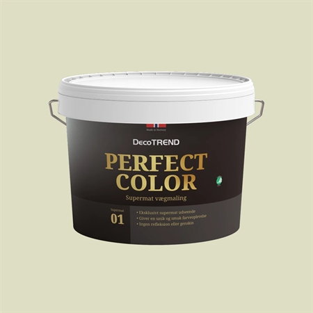 Vores smukkeste maling nogensinde er supermat, med et eksklusivt udseende. Perfect Colors bløde, supermatte finish giver en unik farveoplevelse. Den supermatte overflade, helt uden reflektion, fremhæver farverne på en helt speciel måde – og farven vil opleves både blødere og mere dæmpet.