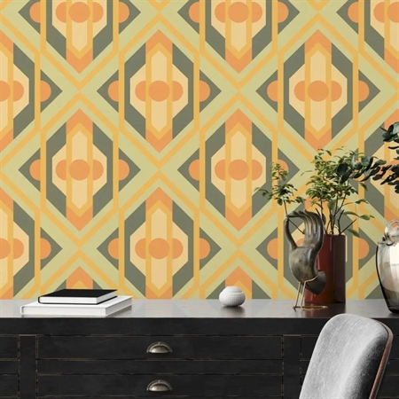Geometric Citrus er et grafisk tapet med retroinspireret mønster og en frisk farvepalette i olivengrønne og citrusgule nuancer. De geometriske former skaber en rytmisk og dynamisk overflade, der giver rummet karakter og liv. Tapetet balancerer fint mellem nostalgi og nutid og passer perfekt til dig, der vil sætte et personligt og legende præg på indretningen.