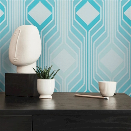 Diamond Sky er et roligt og grafisk tapet med et klassisk rhombemønster i nuancer af støvet blå. Det geometriske design giver en subtil fornemmelse af dybde og bevægelse, mens farvepaletten tilfører rummet en let og afbalanceret stemning. Et ideelt valg til dig, der ønsker et stilrent retrolook med en moderne, luftig kant.
