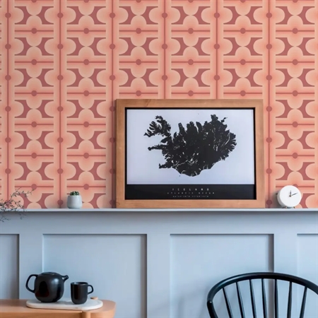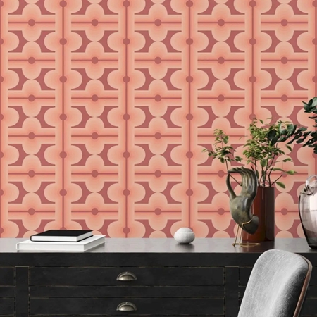 Vintage Blush er et elegant tapet med et blødt, geometrisk mønster i fine rosarøde nuancer. De buede former og den rolige farvepalette skaber et feminint og harmonisk udtryk, der bringer varme og lethed ind i rummet. Tapetet kombinerer retroinspiration med moderne æstetik – perfekt til både soveværelser, stuer og kreative rum.