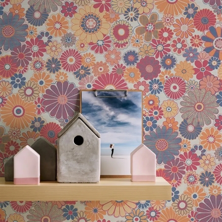 Botanica Sunset er et livligt tapet med stiliserede blomster i varme, solrige nuancer. Inspireret af 70’ernes farveunivers skaber designet en nostalgisk og munter stemning, der passer perfekt til dig, der ønsker at tilføje et farverigt og retroinspireret præg til hjemmet.