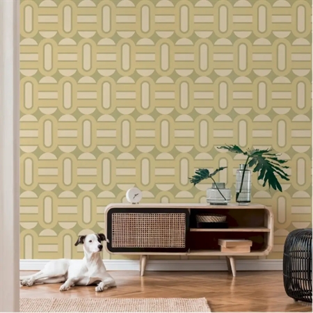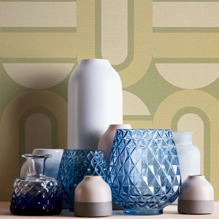 Cube Olive er et retroinspireret tapet med et geometrisk mønster i olivengrønne og beige nuancer. De bløde former og rolige farver skaber en varm og harmonisk stemning, som passer perfekt til både moderne og klassiske rum. Et ideelt valg til dig, der ønsker en væg med karakter, balance og vintage charme.