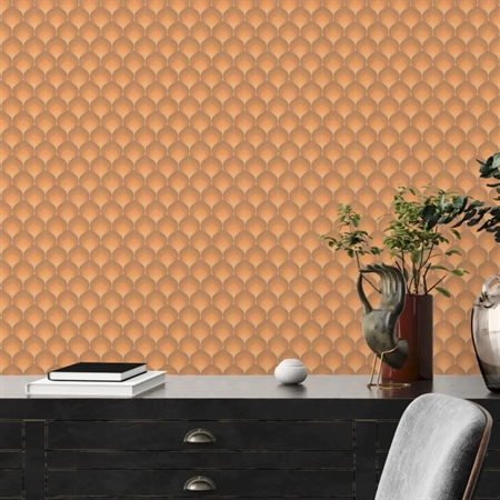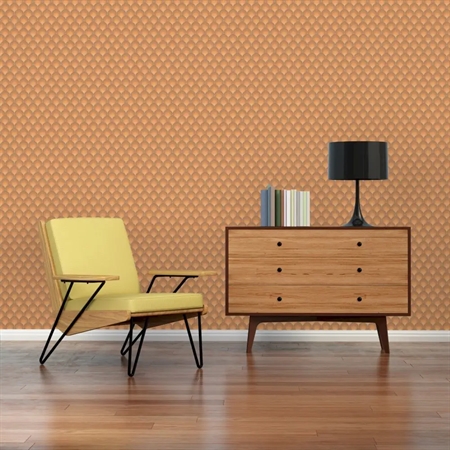 Glow Sand er et elegant tapet med et geometrisk mønster i gyldne og beige toner. Designet er inspireret af retro, og skaber en beroligende, men raffineret stemning i rummet. Det subtile mønster tilfører dybde og struktur, perfekt til dig der ønsker et stilrent udtryk med vintage elegance.