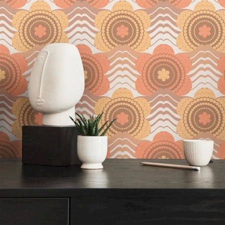 Organic Spice er et varmt og stemningsfuldt tapet med et blomstret og geometrisk mønster i orange og beige nuancer. De bløde linjer og retroinspirerede detaljer skaber en levende, men afbalanceret vægflade med masser af personlighed. Perfekt til dig, der ønsker at tilføje varme og visuel dybde til indretningen.
