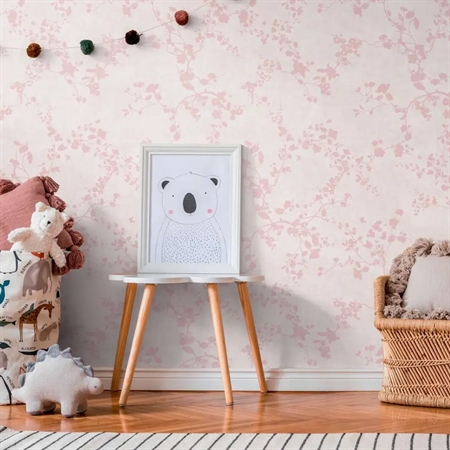 Garden Fantasy fra vores Lilly & Luis kollektion omdanner børneværelset til en blomstrende oase. De fine blomstergrene i lyserøde og beige toner svæver let over tapetets puderede overflade og skaber en blid, romantisk stemning, der passer perfekt til både leg og afslapning. Motivets håndtegnede detaljer giver et kunstnerisk og tidløst look uden at virke overflyvende.