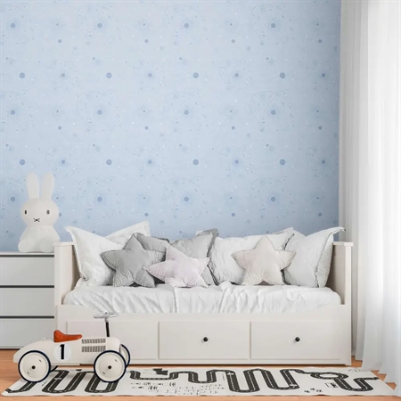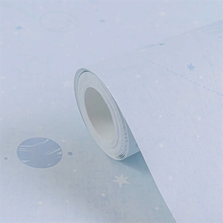 Galaxy fra vores Lilly & Luis kollektion inviterer små astronauter ud på et stjernerejseeventyr med en himmel fyldt med planeter, stjerner og måner i rolige blå nuancer. Det diskrete universdesign skaber en tryg, fantasifuld stemning, ideel til rolige lege og små drømmestunder.