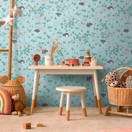 Little Mermaid fra vores Lilly & Luis-kollektion forvandler børneværelset til en magisk, undervandsverden. Motivet fremviser yndefulde havfruer blandt vandliljer, fisk og bølger i sarte nuancer af blå, grøn og creme. Det legende, håndtegnede design skaber en eventyrlig, men rolig stemning — perfekt til stille stunder og fantasifuld leg.