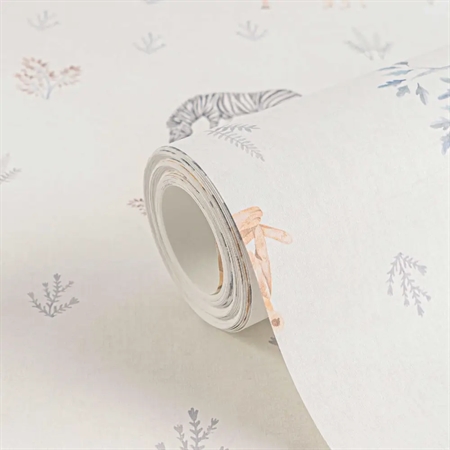 Safari Adventure fra vores Lilly & Luis kollektion bringer junglens magi ind i børneværelset med charmerende giraffer, elefanter og aber i bløde beige, gule og grå nuancer. Det finstregede mønster skaber en rolig, men livlig atmosfære – ideel til både leg og afslapning.