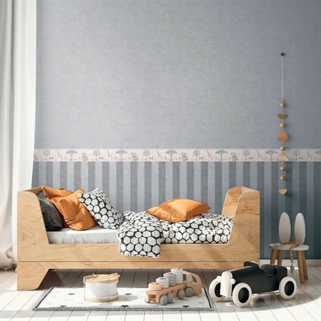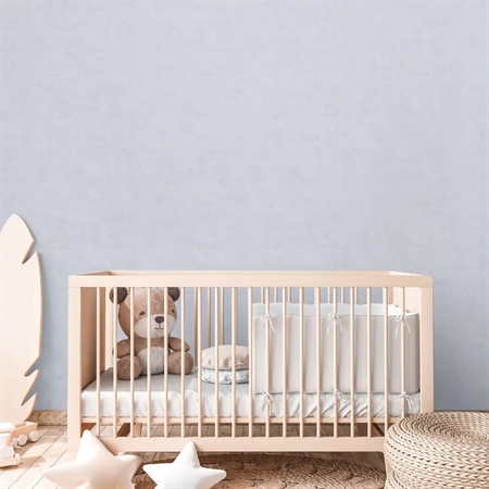 Timeless fra vores Lilly & Luis kollektion er et enkelt og elegant valg til børneværelset. Med sin matte, gråblå nuance og diskrete struktur tilbyder tapetet en rolig og tidløs baggrund, der understøtter kreativitet uden at forstyrre – ideel som rolig base ved siden af mere mønstrede designs, eller alene som en klassisk vægbeklædning.
