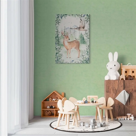 Timeless fra vores Lilly & Luis kollektion er et enkelt og elegant valg til børneværelset. Med sin matte, grønne nuance og diskrete struktur tilbyder tapetet en rolig og tidløs baggrund, der understøtter kreativitet uden at forstyrre – ideel som rolig base ved siden af mere mønstrede designs, eller alene som en klassisk vægbeklædning.