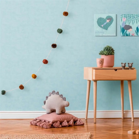 Timeless fra vores Lilly & Luis kollektion er et enkelt og elegant valg til børneværelset. Med sin matte, turkisblå nuance og diskrete struktur tilbyder tapetet en rolig og tidløs baggrund, der understøtter kreativitet uden at forstyrre – ideel som rolig base ved siden af mere mønstrede designs, eller alene som en klassisk vægbeklædning.