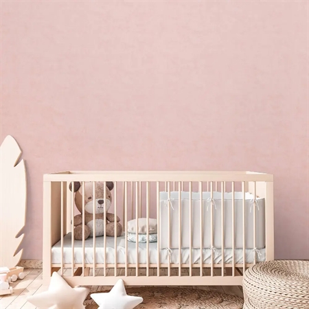 Plain fra vores Lilly & Luis kollektion tilbyder en blød og enkel lyserød nuance, der giver børneværelset varme og harmoni. Tapetets rolige strukturerede overflade giver en beroligende base – perfekt som baggrund til mønstrede designs eller som en stilren ensfarvet løsning.