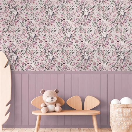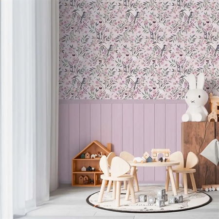 Fra Lilly & Luis-kollektionen bringer Bird Paradise en romantisk og drømmende stemning til børneværelset – med fine fugle og blomster i bløde grønne og rosa toner, der skaber en let og fantasifuld atmosfære.