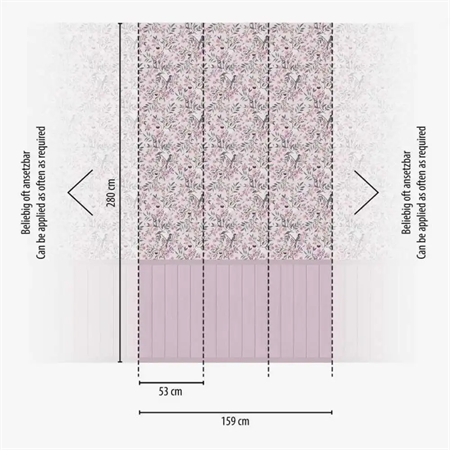Banerne kan nemt tilpasses i højden ved loft og fodliste. Er væggen højere end motivet, kan man centrere motivet og male/opsætte ensfarvet tapet over eller under for en harmonisk afslutning.
