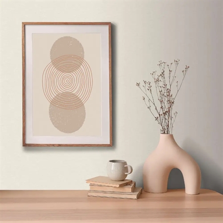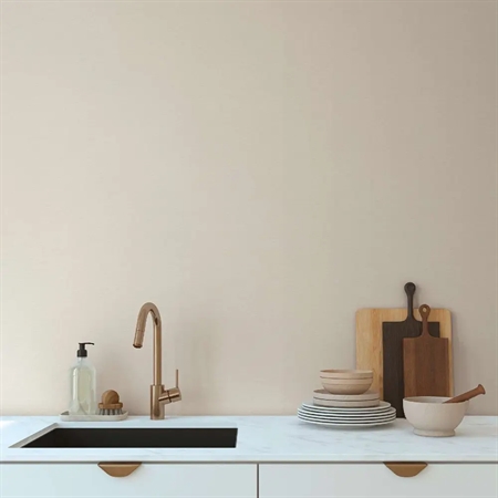 Fra Mia & Paul-kollektionen får du et stilrent ensfarvet tapet i blød beige med diskret tekstilstruktur. Den naturlige nuance giver en varm og rolig atmosfære, og tapetet fungerer både smukt alene eller som harmonisk baggrund til de mere mønstrede designs i kollektionen.
