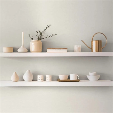 Fra Mia & Paul-kollektionen får du et stilrent ensfarvet tapet i naturlig hvid med diskret tekstilstruktur. Den lyse nuance giver en rolig og harmonisk atmosfære, og tapetet fungerer både smukt alene eller som neutral baggrund til de mere mønstrede designs i kollektionen.