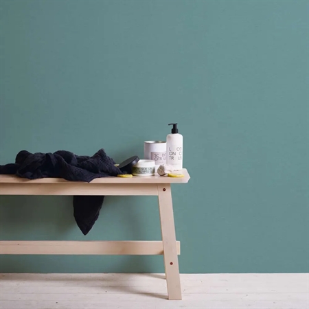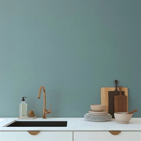 Fra Mia & Paul-kollektionen får du et stilrent ensfarvet tapet i teal-blå med diskret tekstilstruktur. Den dybe nuance giver rummet karakter og ro, og tapetet fungerer både smukt alene eller som stemningsfuld baggrund til de mere mønstrede designs i kollektionen.