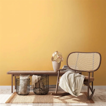 Fra Mia & Paul-kollektionen får du et elegant ensfarvet tapet i blid gul med diskret linnedstruktur. Den let varme nuance skaber en lys og indbydende atmosfære – perfekt som neutral baggrund eller varm base til de mere mønstrede designs i serien.