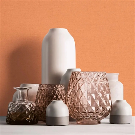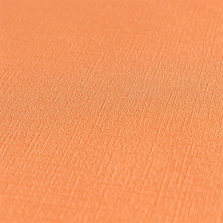 Fra Mia & Paul‑kollektionen får du et elegant ensfarvet tapet i en blød orange nuance med diskret linnedstruktur. Den varme farve bringer liv og varme til rummet – ideel som stemningsfuld base eller kontrastfuld baggrund til de mere strukturerede mønstre i serien.