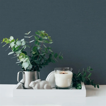 Fra Mia & Paul-kollektionen får du et elegant ensfarvet tapet i dyb blå med diskret linnedstruktur. Den mørke nuance tilfører rummet dybde og ro – ideel både som stilfuld baggrund eller kontrastfuld base i indretningen.