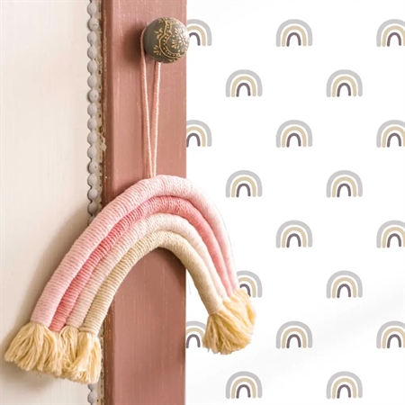 Skab et lyst, roligt og inspirerende børneværelse med Arche 17129 – et smukt børnetapet med enkle regnbuer i bløde jordfarver. De fine nuancer af grå, beige og brun på en lys baggrund skaber et harmonisk og stilrent udtryk, der passer perfekt til både babyværelser, børneværelser og rolige legeområder.