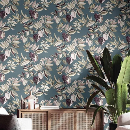 Giv dit hjem et elegant og naturinspireret løft med Arche 26437 – et stilfuldt tapet med detaljerede blade i støvede lilla, beige og gyldenbrune toner på en smuk, tealgrøn baggrund. Det balancerede design kombinerer bløde kurver og fine linjer og skaber et harmonisk udtryk, der bringer naturens former ind i moderne rum.