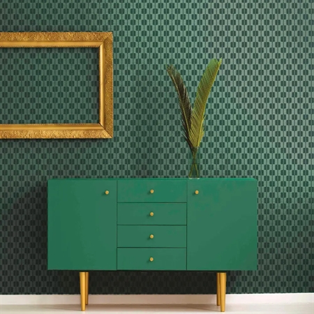 Tilfør dit hjem et moderne retro-touch med Arche 30175 – et elegant tapet med gentagne firkanter og linjer i smukke, dybe grønne nuancer. Det geometriske mønster skaber en diskret, men livlig dynamik på væggen og giver rummet en fin balance mellem grafisk udtryk og rolig atmosfære.