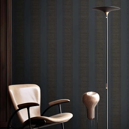 Giv rummet et eksklusivt og dramatisk udtryk med Arche 33369 – et elegant tapet med brede, vertikale striber i dyb grå og mørkegrønne toner. Den mørke farvepalet og den teksturerede overflade tilfører væggene dybde og karakter og skaber en sofistikeret og intim stemning.