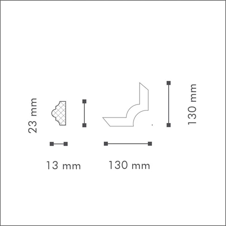 Arstyl Vægliste SP3, som har samme tykkelse og bredde. Stukhjørnerne er formalet fra fabrikken og kan overmales med almindelige typer acryl- og alkydmalinger. Vi anbefaler at man opsætter disse stukhjørner med