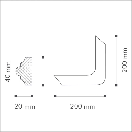 Arstyl Vægliste Z10, som har samme tykkelse og bredde. Stukhjørnerne er formalet fra fabrikken og kan overmales med almindelige typer acryl- og alkydmalinger. Vi anbefaler at man opsætter disse stukhjørner med