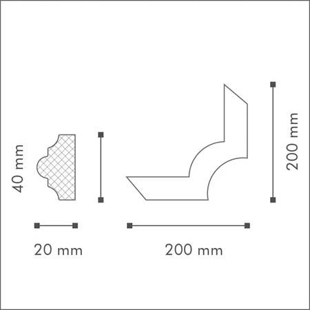 Arstyl Vægliste Z10, som har samme tykkelse og bredde. Stukhjørnerne er formalet fra fabrikken og kan overmales med almindelige typer acryl- og alkydmalinger. Vi anbefaler at man opsætter disse stukhjørner med