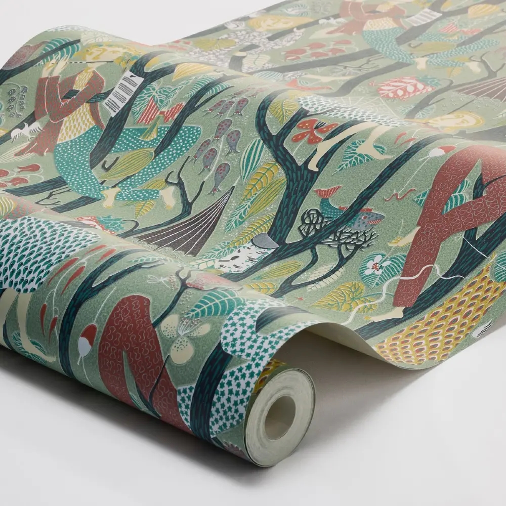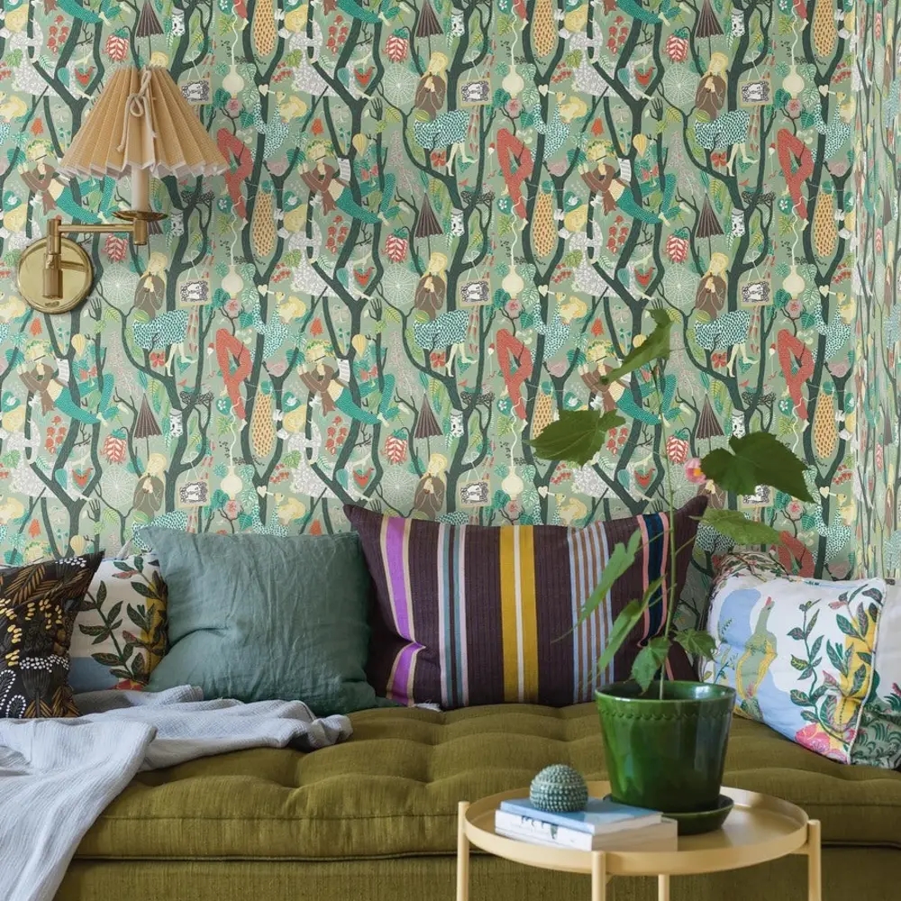 Her ses Melodi i en nyfortolket, blød multifarvet palet på en sart lysegrøn bund. En harmonisk farvesammensætning, der giver det dekorative mønster et let og roligt udtryk – velegnet til både stue, soveværelse eller kreative rum.