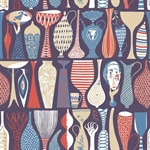 Pottery er et grafisk og karakterfuldt tapet designet af Stig Lindberg, hvor rækker af stiliserede vaser, skulpturer og keramiske former danner et rytmisk og dekorativt mønster. Designet afspejler Lindbergs livslange fascination af keramik og hans legende, formsikre streg, som giver tapetet både personlighed og dybde.