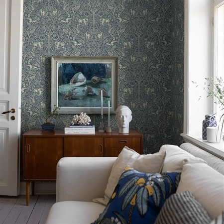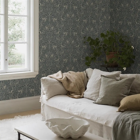 Under the Elder Tree passer smukt i stue, spisestue eller soveværelse, hvor det tilfører rummet en rolig, luksuriøs og næsten eventyrlig atmosfære.