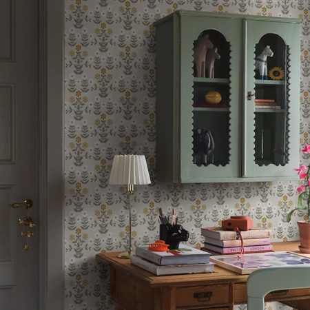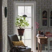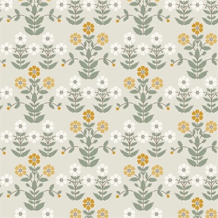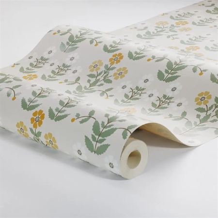 Her ses Sippor i en frisk farveskala med solrige gule nuancer kombineret med kølige grå toner og fine detaljer i brun, hvid og grøn. Et alsidigt tapet, der passer smukt i både stue, køkken og gang, hvor du ønsker en varm og levende stemning.
