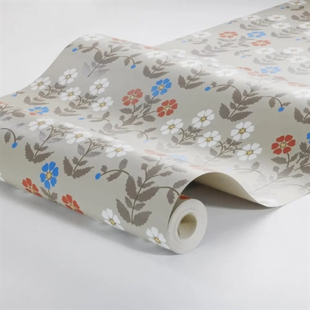 Her ses Sippor i en moderne og markant farvepalet med koboltblå, engelsk rød og rustik brun på en blød grå bund. Et stemningsfuldt tapet, der passer perfekt i soveværelset, køkkenet eller entréen, hvor der ønskes et drømmende og personligt udtryk.