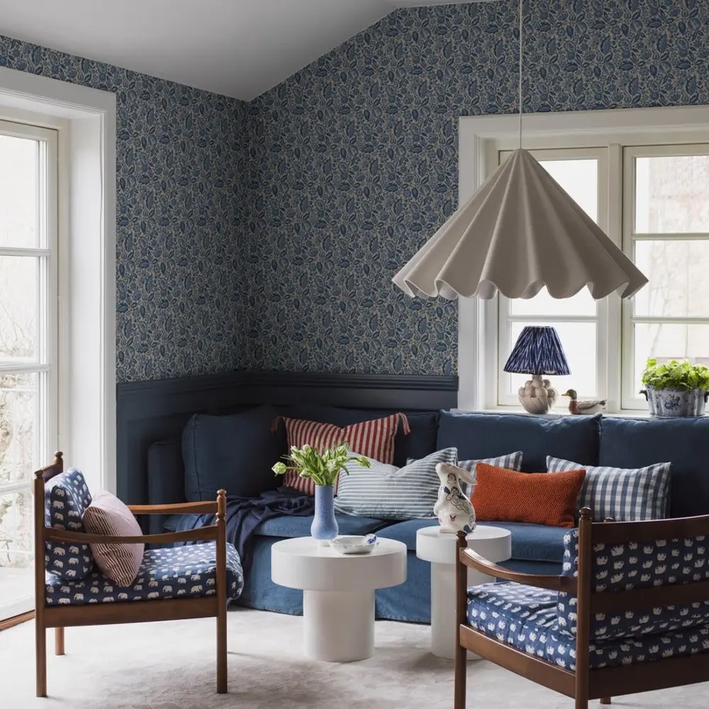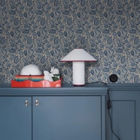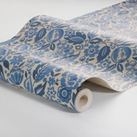 Her ses Elise i en tone-i-tone blå farveskala på en hørbeige bund. Et harmonisk tapet, der passer smukt i køkkenet, gangen eller stuen, hvor du ønsker en rolig og afbalanceret stemning med masser af karakter.