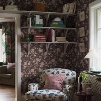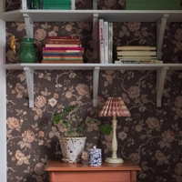 Rosenträd er et klassisk tapet med et rigt og stemningsfuldt udtryk, hentet fra Boråstapeters arkiver og inspireret af historiske blomstermotiver. Mønstret består af snoede rosenkviste med fyldige blomster, arrangeret i et harmonisk og tæt, men roligt forløb, der giver væggen både dybde og karakter.