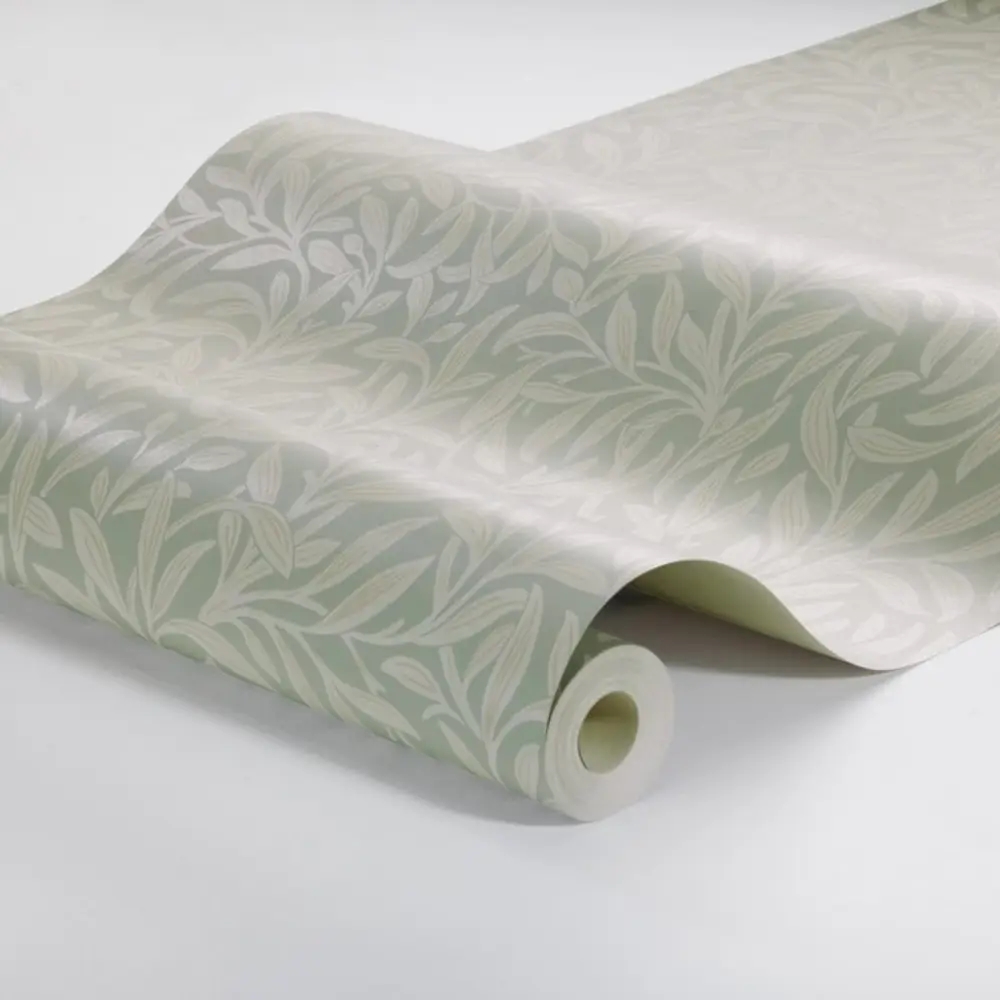 Farverne holdes i en pudret pastelgrøn tone, smukt suppleret af accenter i linned beige og dæmpet terrakotta. Den bløde farveskala giver tapetet et let og harmonisk præg, der føles både naturligt og tidløst.