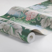Farvesætningen holdes i en lys jadegrøn tone, suppleret af fine nuancer af varm grå, lyserød, gul og blå. Samspillet mellem farverne giver tapetet dybde og lethed på samme tid og skaber en overflade, der opleves rig uden at virke tung.