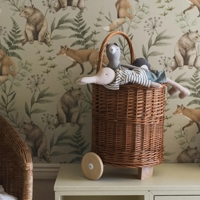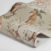 Wild Forest er et roligt og stemningsfuldt børnetapet fra Newbie II-kollektionen, hvor en bjørn og en ræv bevæger sig gennem en blød, nordisk skov. De fine illustrationer og den varme farveholdning skaber et trygt og fantasifuldt univers, der følger barnet gennem hele barndommen.