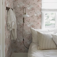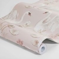 Her er Lily Swan farvet i lyserøde, hvide og bløde brune nuancer, som giver tapetet et let og harmonisk udtryk. Et stilfuldt valg til børneværelset, stuen eller et kreativt hjørne, hvor du ønsker en blid og fantasifuld baggrund.