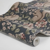 Her er Magic Forest farvet på en mørkeblå bund med detaljer i lyserød og grøn, hvilket giver tapetet et dybt og harmonisk udtryk. Et alsidigt valg til børneværelset, stuen eller et kreativt studie, hvor du ønsker en rolig og fortryllende atmosfære.