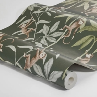 Jungle Friends er et livligt og charmerende børnetapet fra Newbie II-kollektionen, hvor legende aber svinger sig mellem palmer og tropiske blade. Det fantasifulde mønster bringer varme, energi og eventyrlyst ind i rummet – perfekt til børn med en nysgerrig sjæl.