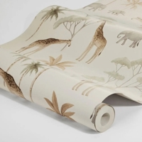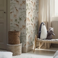 Savannah er et varmt og stemningsfuldt børnetapet fra Newbie II-kollektionen, hvor giraffer rækker mod trætoppene, og en lille elefant følger trygt i hælene på sin mor. Det rolige motiv skaber en blid, moderne og eventyrlig atmosfære, som passer perfekt til et rum, der skal føles trygt og inspirerende.