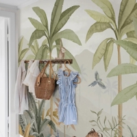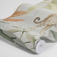 Wild Jungle Mural er et dramatisk og eventyrligt børnetapet fra Newbie II-kollektionen, hvor aber, vilde katte og farverige fugle bevæger sig mellem frodige jungleplanter. De detaljerede illustrationer skaber en varm og eksotisk stemning, som inviterer barnet på små opdagelsesrejser i hverdagen.